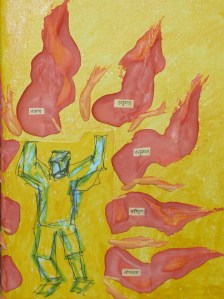 Here’s some mean-spirited irony: it all begins with a recycling bin. Save the planet, small carbon footprint, and feel like I’m not among the decimating and despoiling human herd. A big blue plastic bin, overflowing with magazines. It’s impossible to drag from the sides without busting it, the damn thing is so heavy. So I lift from the bottom, like a Bulgarian Olympic dude in tights with those blocky shoes and wrapped knees. Big mistake. Something clenches in my lower spine, like a chomp of tiny teeth. What was I thinking? Answer: I was not.